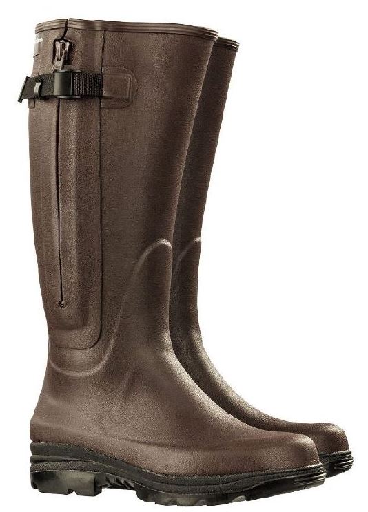 Ideálne na lov, rybolov a jazdu na koni, 4 mm hrubá neoprénová podšívka, flexibilná, nastaviteľná šírka nôh - až 10 cm, tepelnoizolačná schopnosť (až -22 °), Ľahší vstup do topánok vďaka kvalitnému zipsu YKK (cca 25 cm)· Podrážka: vysoko profilovaná, protišmyková a odolná proti opotrebeniu, samočistiaca, odpružená gumená podrážka· Farba: hnedá (400), s červenou neoprénovou podšívkou